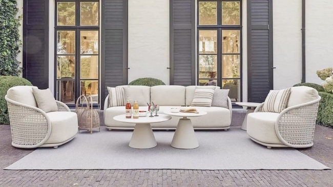 Το καθιστικό αποτελείται από έναν καναπέ 3 θέσεων, δύο πολυθρόνες και δύο βοηθητικά τραπεζάκια.