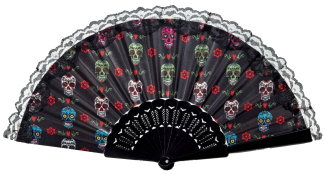 Αποκριάτικο Αξεσουάρ Βεντάλια με Νεκροκεφαλές
