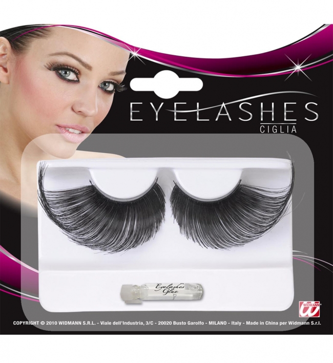 Αποκριάτικο Αξεσουάρ Μαύρες Μεγάλες Βλεφαρίδες, Περιλαμβάνει Γυάλινο Μπουκαλάκι Με Κόλλα