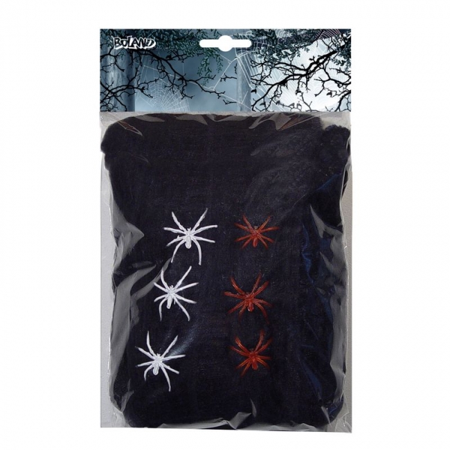 Αποκριάτικο Διακοσμητικό Ιστός Αράχνης Μαύρος 100gr με 6 Αράχνες