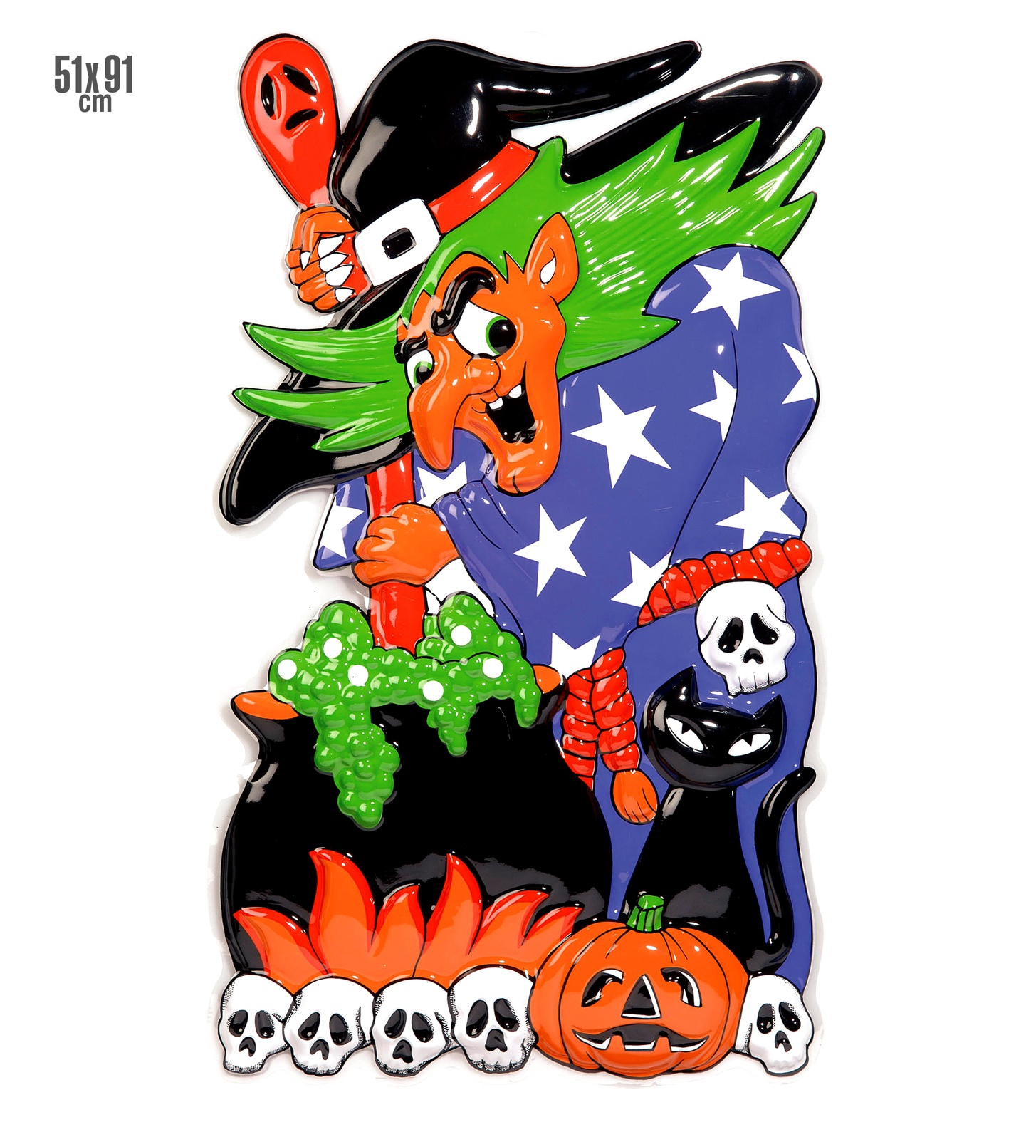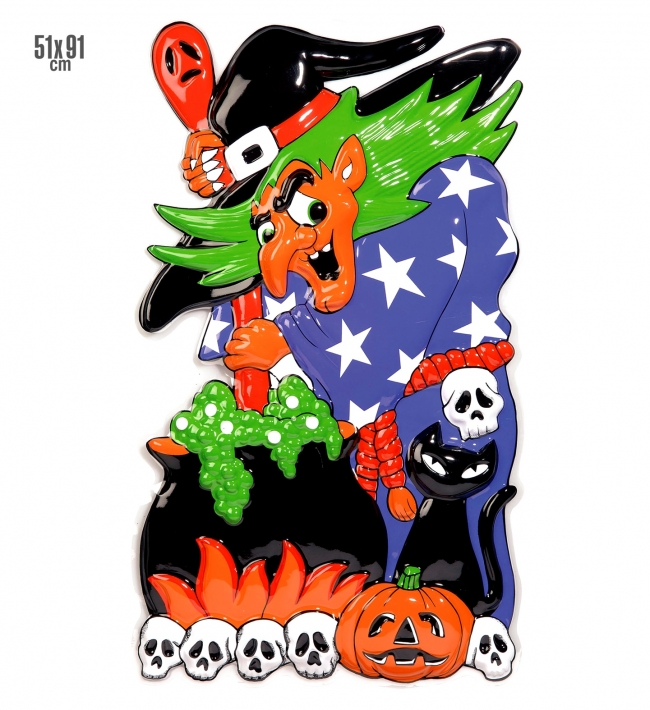 Αποκριάτικο Διακοσμητικό Τοίχου Μάγισσα με Τσουκάλι 3D 51εκ x 91εκ