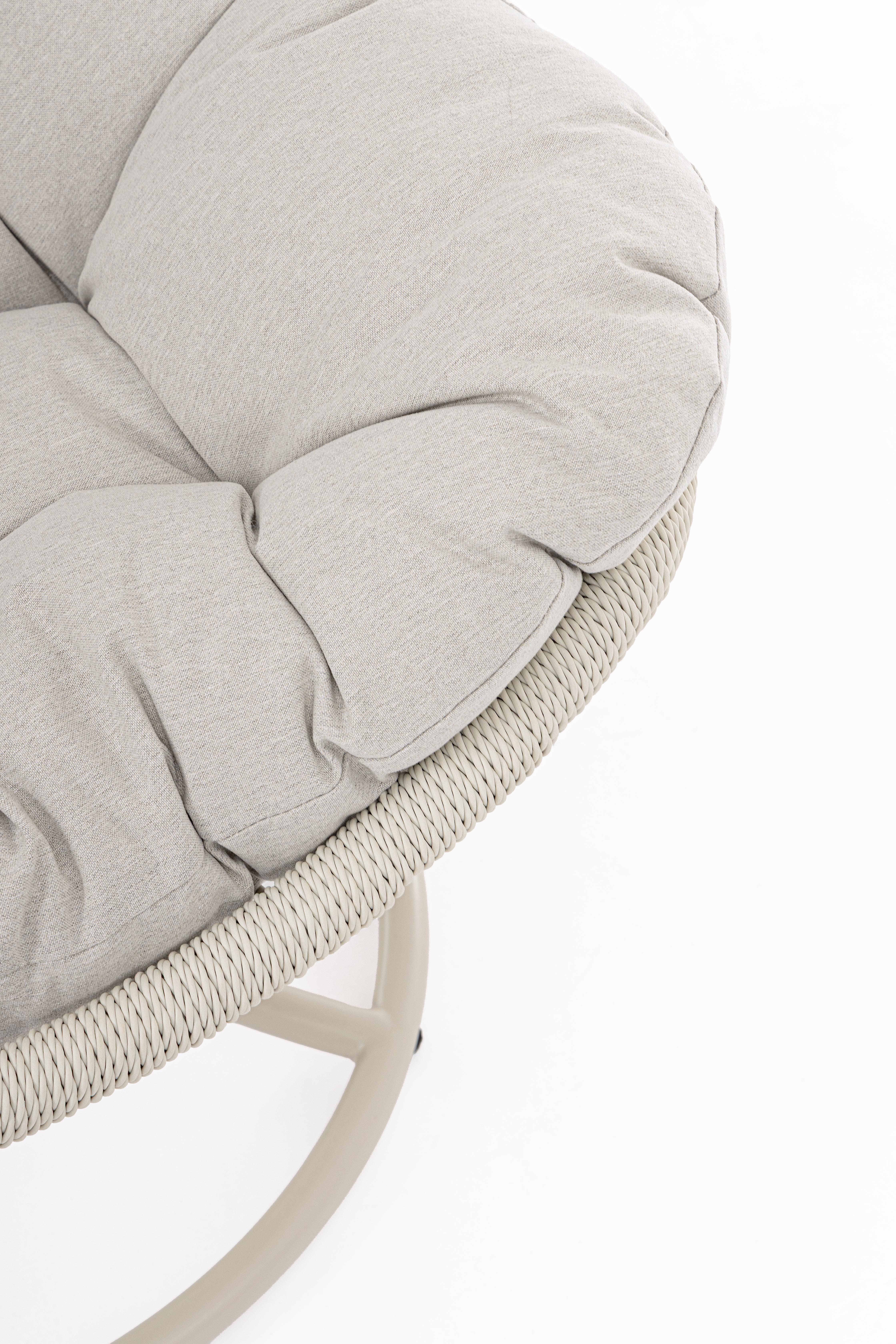 Πολυθρόνα κήπου χαλύβδινη με επίστρωση πούδρας για εξωτερική χρήση και συνθετικό σχοινί 5mm. Συμπεριλαμβάνεται το μη αφαιρούμενο μαξιλάρι από υδροαπωθητικό ύφασμα πολυεστέρα.