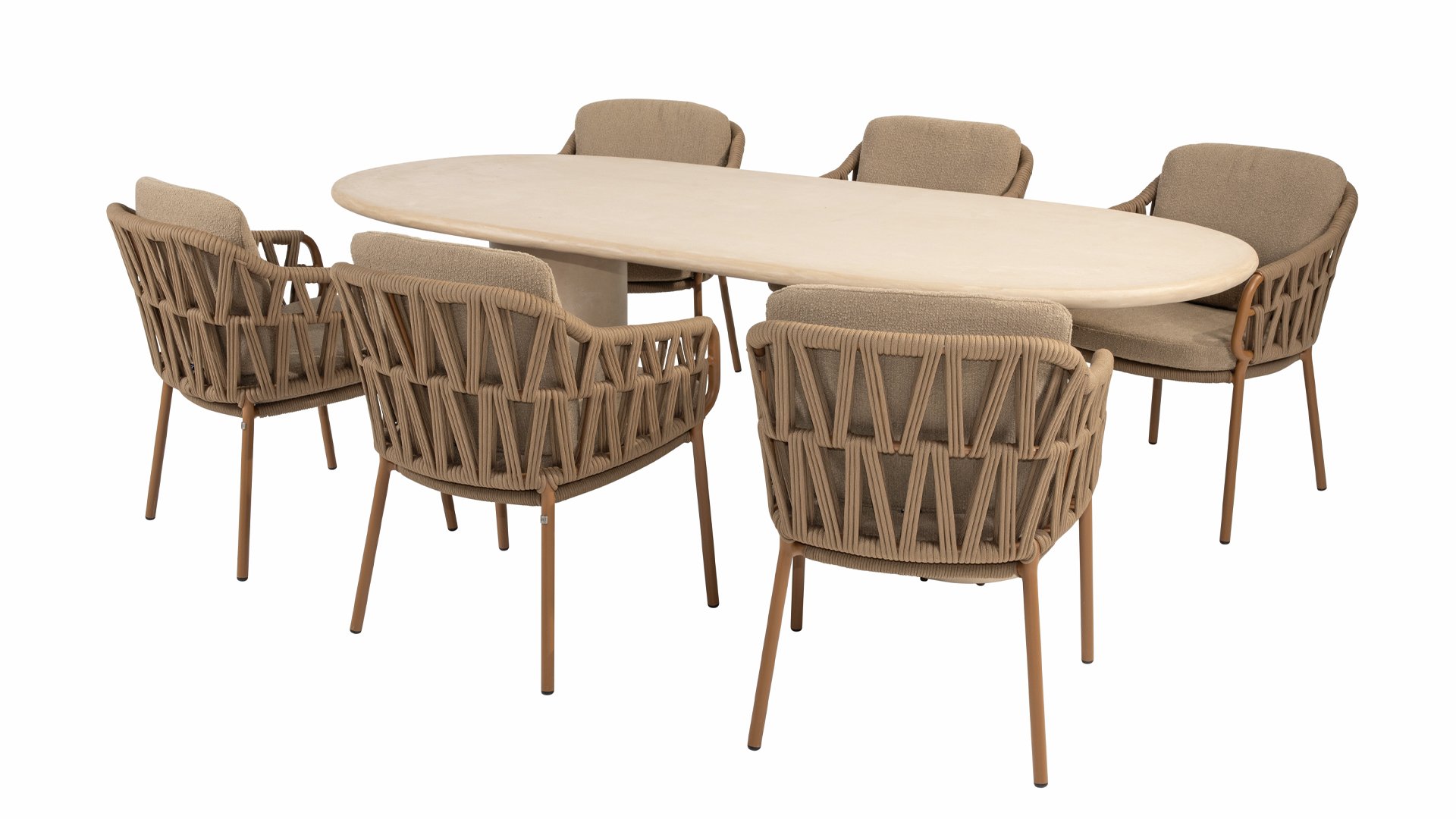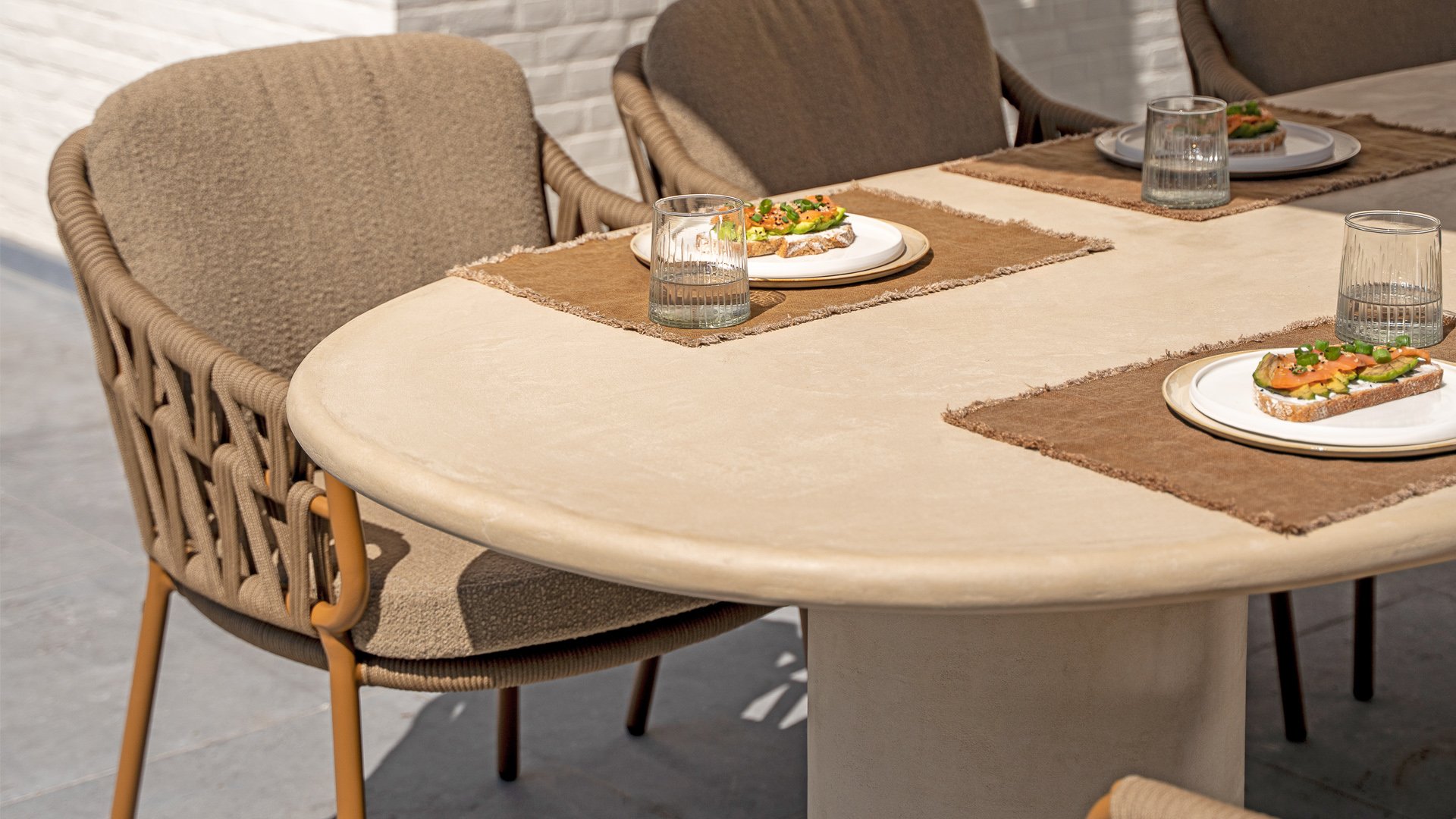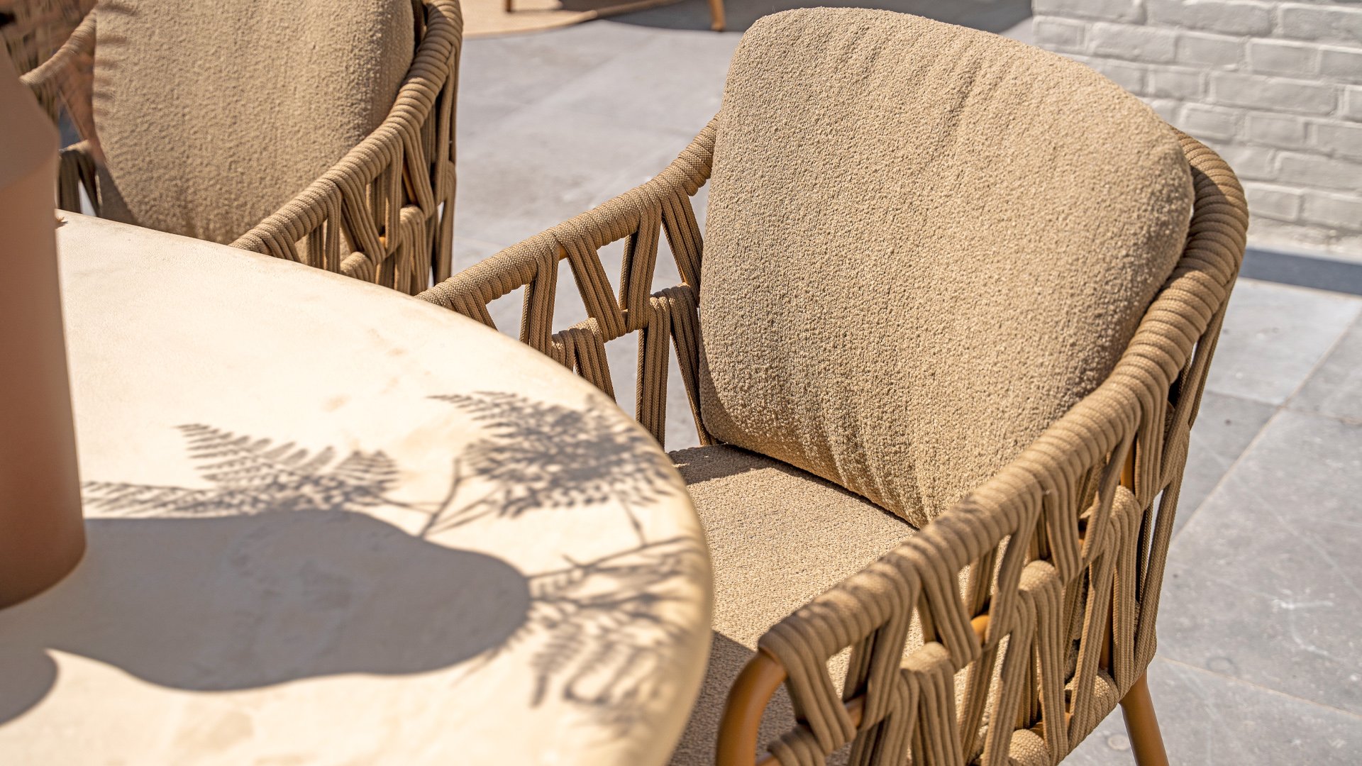 Την τέλεια ισορροπία μεταξύ εκλεπτυσμένης κομψότητας και στιβαρής απλότητας. Αυτό το όμορφο τραπέζι κήπου σε κομψή μπεζ/λευκή απόχρωση αποπνέει ηρεμία και πολυτέλεια και αποτελεί την καρδιά κάθε εξωτερικού χώρου - από οικεία δείπνα μέχρι μακριές καλοκαιρινές βραδιές με φίλους και οικογένεια.