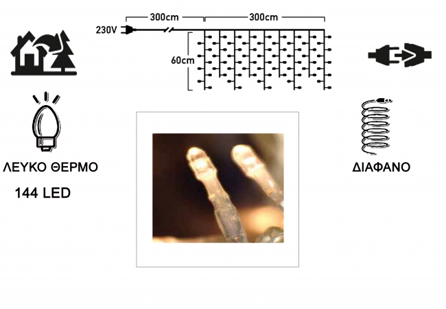 Βροχή 144 LED με Επέκταση - Λευκό Θερμό 3μ X 0,60μ Χριστουγεννιάτικα Φωτάκια