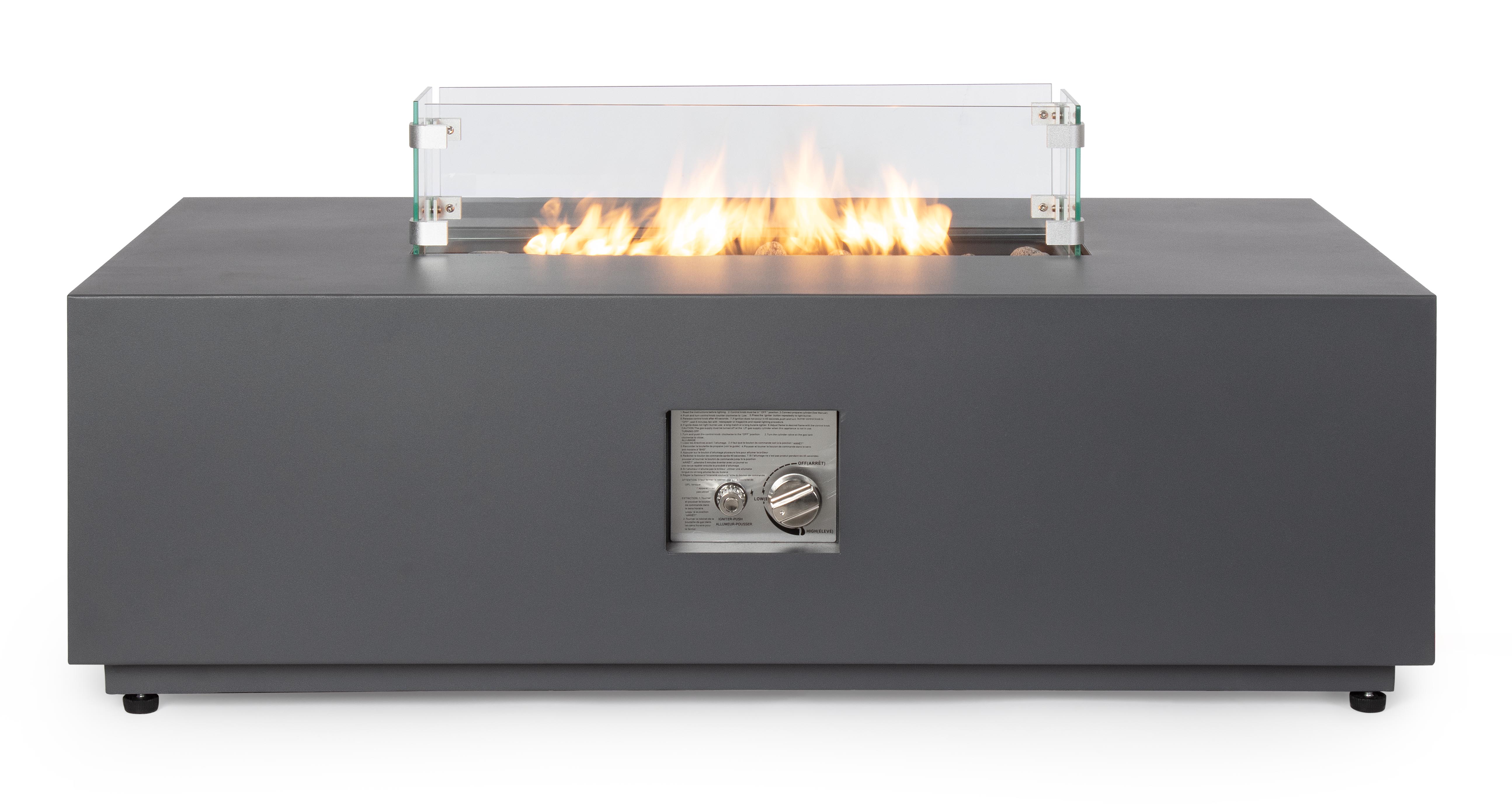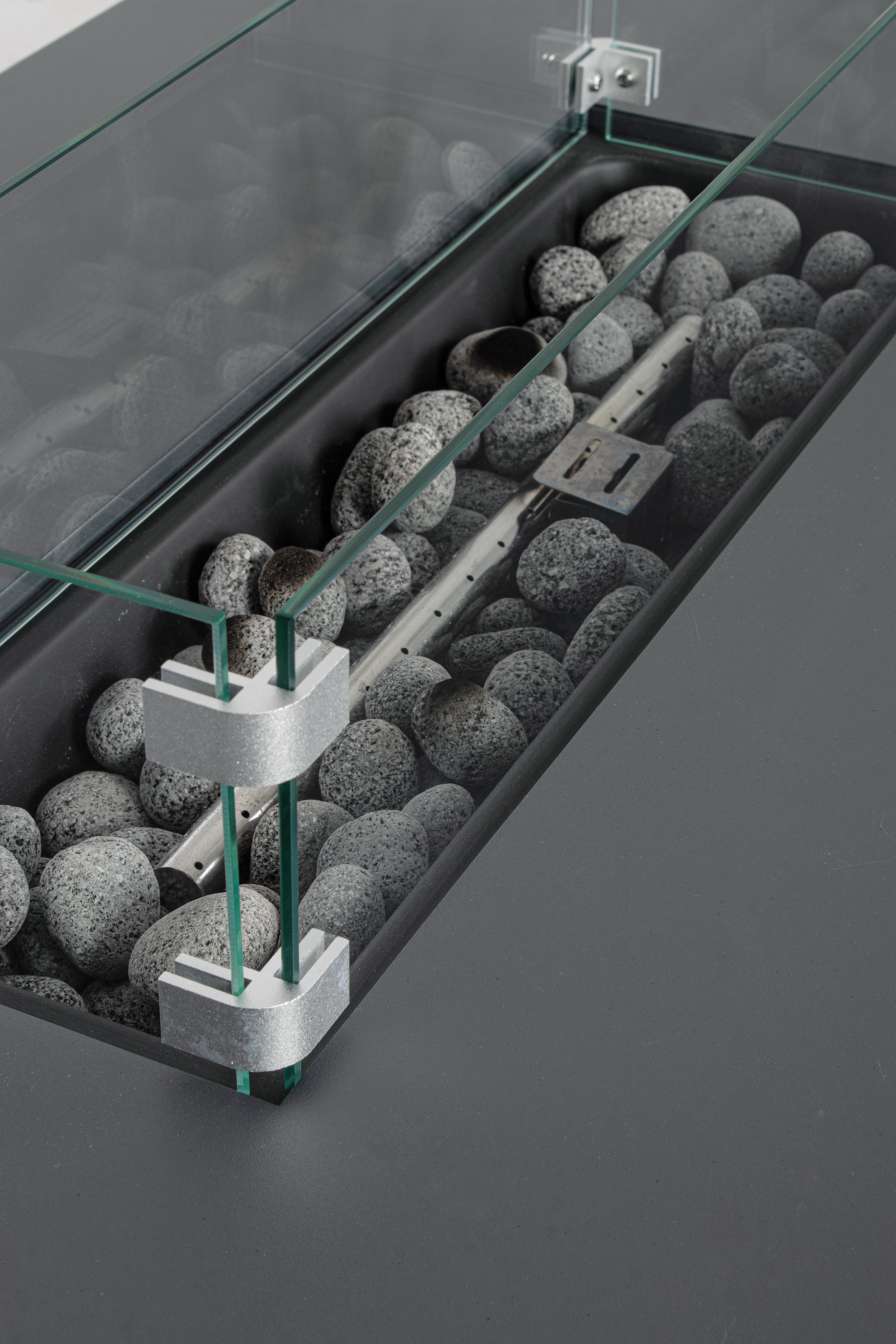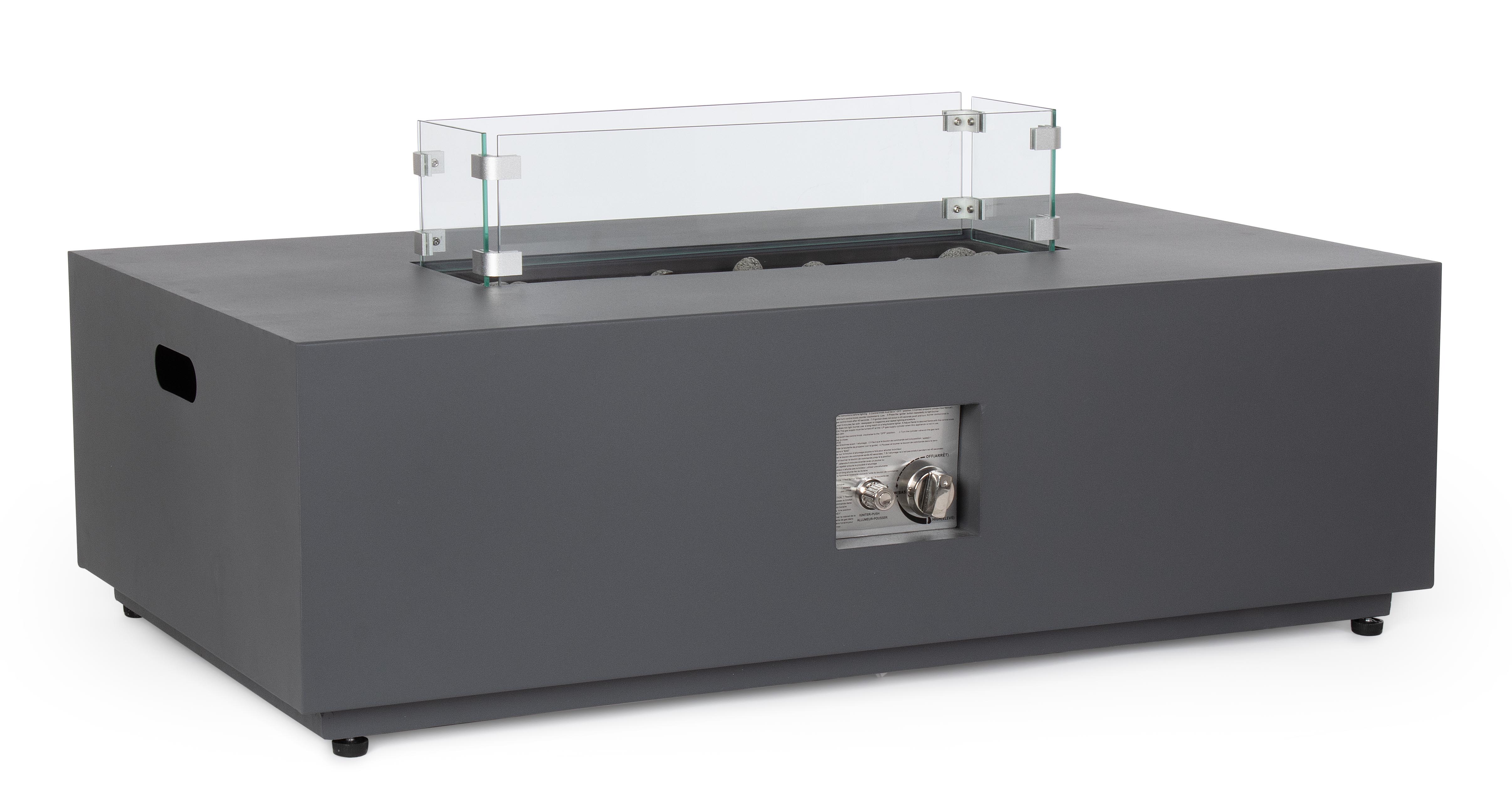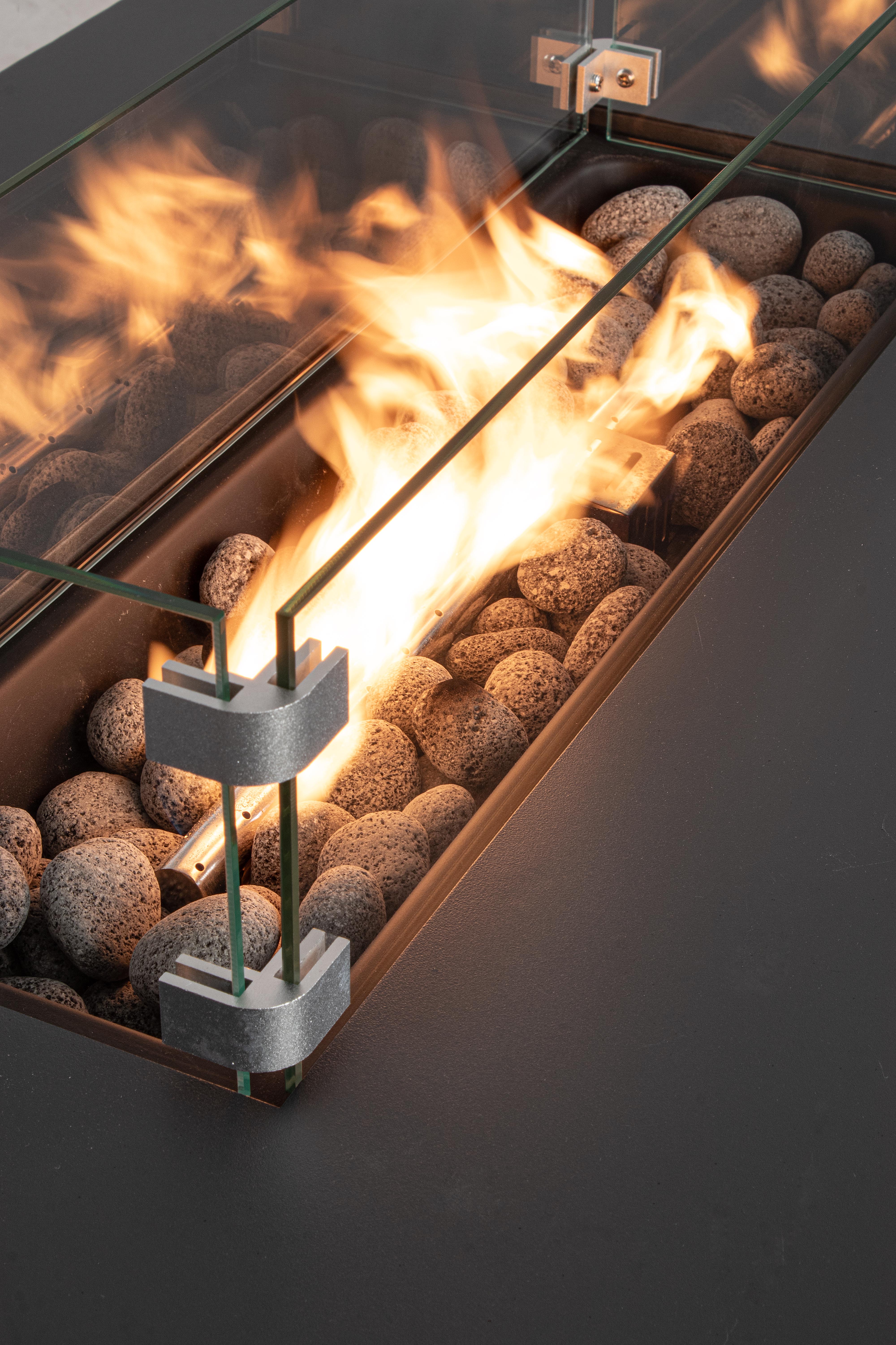 Τζάκι εξωτερικού χώρου που λειτουργεί με μπουκάλα προπάνιου 5kg(δεν περιλαμβάνεται). Στο κέντρο υπάρχουν διακοσμητικές πέτρες λάβας καθώς και το τζάμι που φαίνεται στην φωτογραφία το οποίο κατά την αποθήκευση αφαιρείται. Συμπεριλαμβάνεται κάλυμμα προστασίας για όταν δεν χρησιμοποιείται.