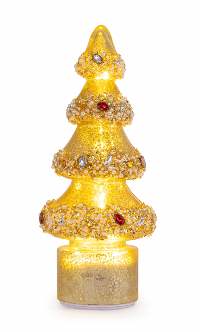 Γυάλινο Διακοσμητικό Περιστρεφόμενο Δέντρο με Φως 32,5 εκ**