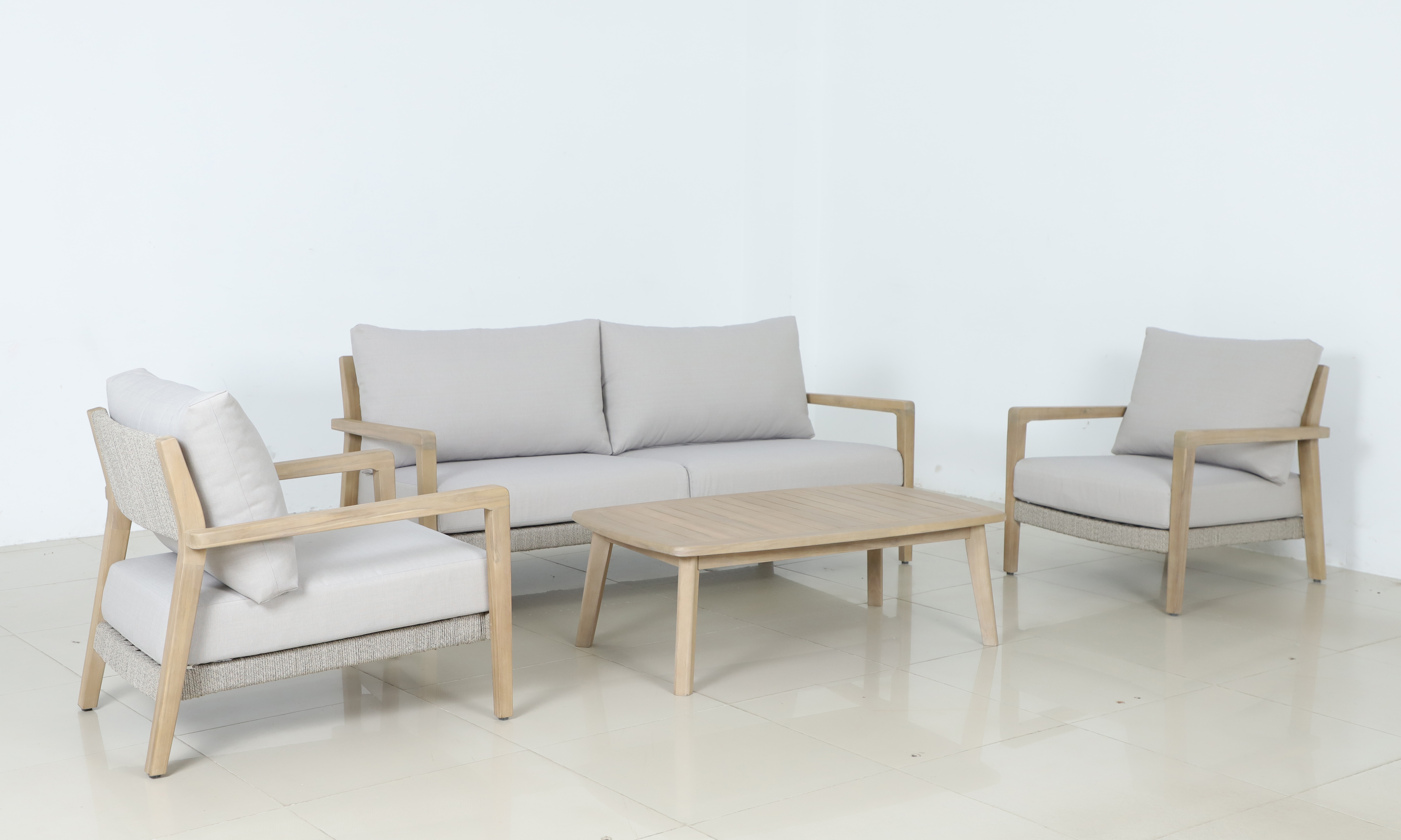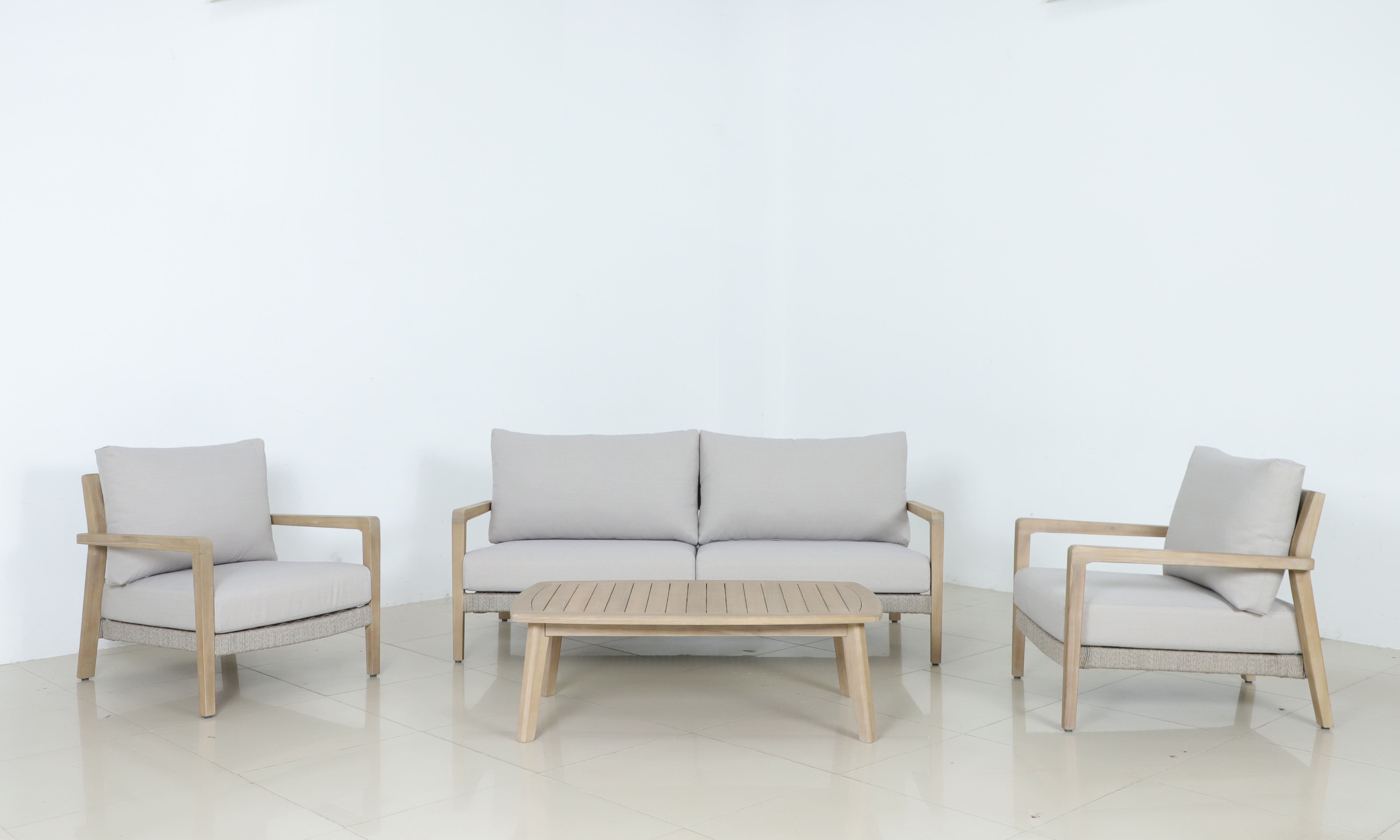 Το καθιστικό αποτελείται από έναν τριθέσιο καναπέ, δύο πολυθρόνες και 1 βοηθητικό τραπεζάκι.