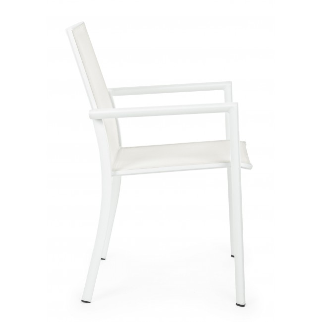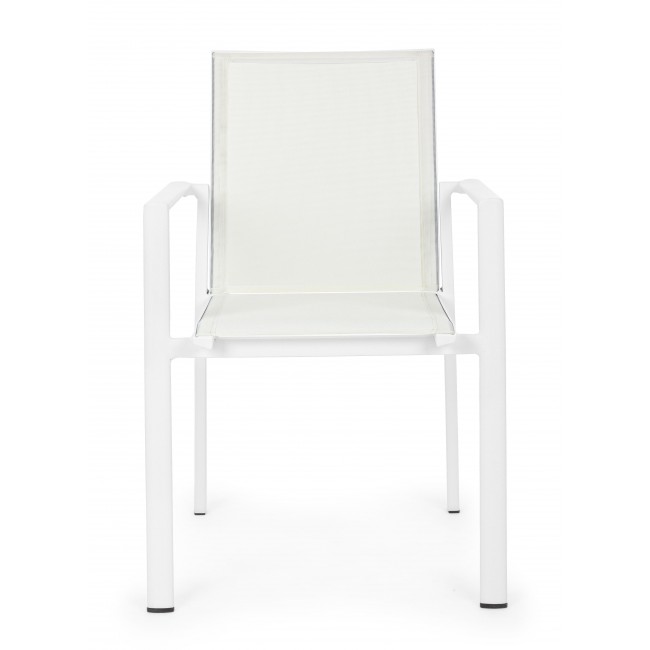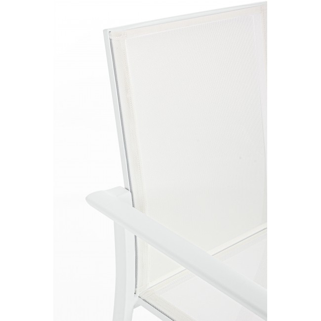Πολυθρόνα κήπου με λευκό σκελετό αλουμινίου και Textilene ύφασμα σε λευκό χρώμα. Στοιβαζόμενη.
