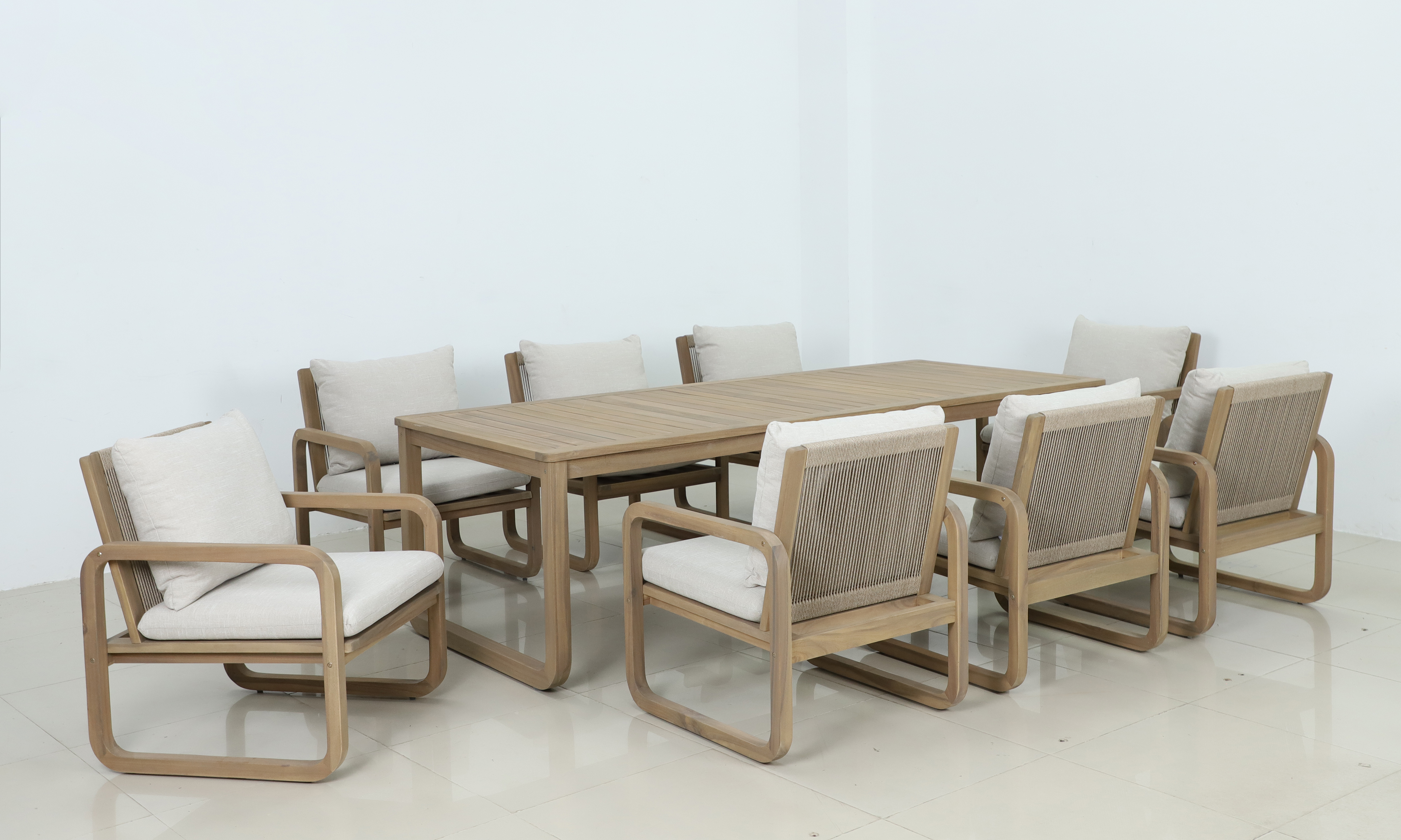 Το σετ αποτελείται από ένα τραπέζι κήπου από σκελετό ακακίας και 6 πολυθρόνες.