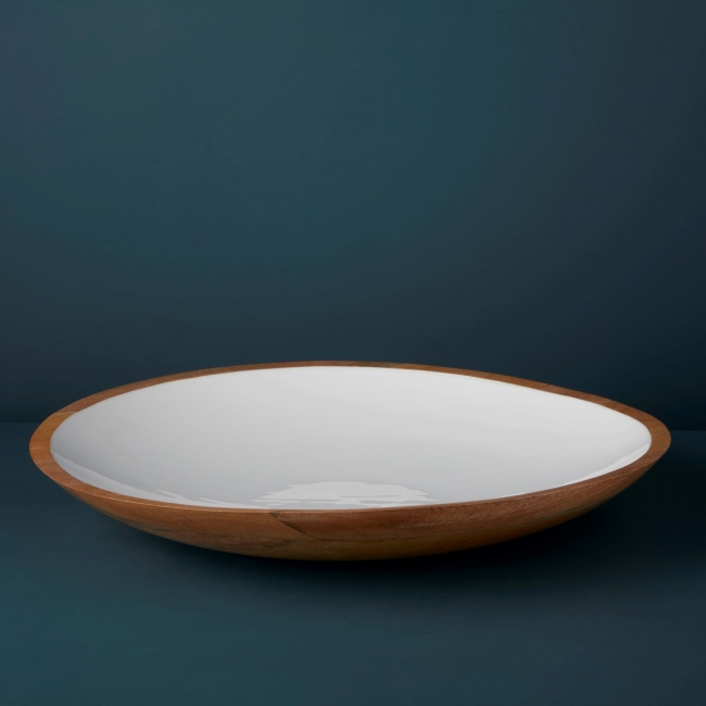 Με τα εντυπωσιακά σχήματα και τον κομψό σχεδιασμό του, το οβάλ πιάτο από ξύλο μάνγκο Madras είναι πραγματικά εντυπωσιακό. Χειροποίητο από προστατευόμενα άλση, κάθε κομμάτι είναι μοναδικά εμπλουτισμένο με το δικό του σύνολο φυσικών ραβδώσεων και διακριτικών ανταύγειων.
