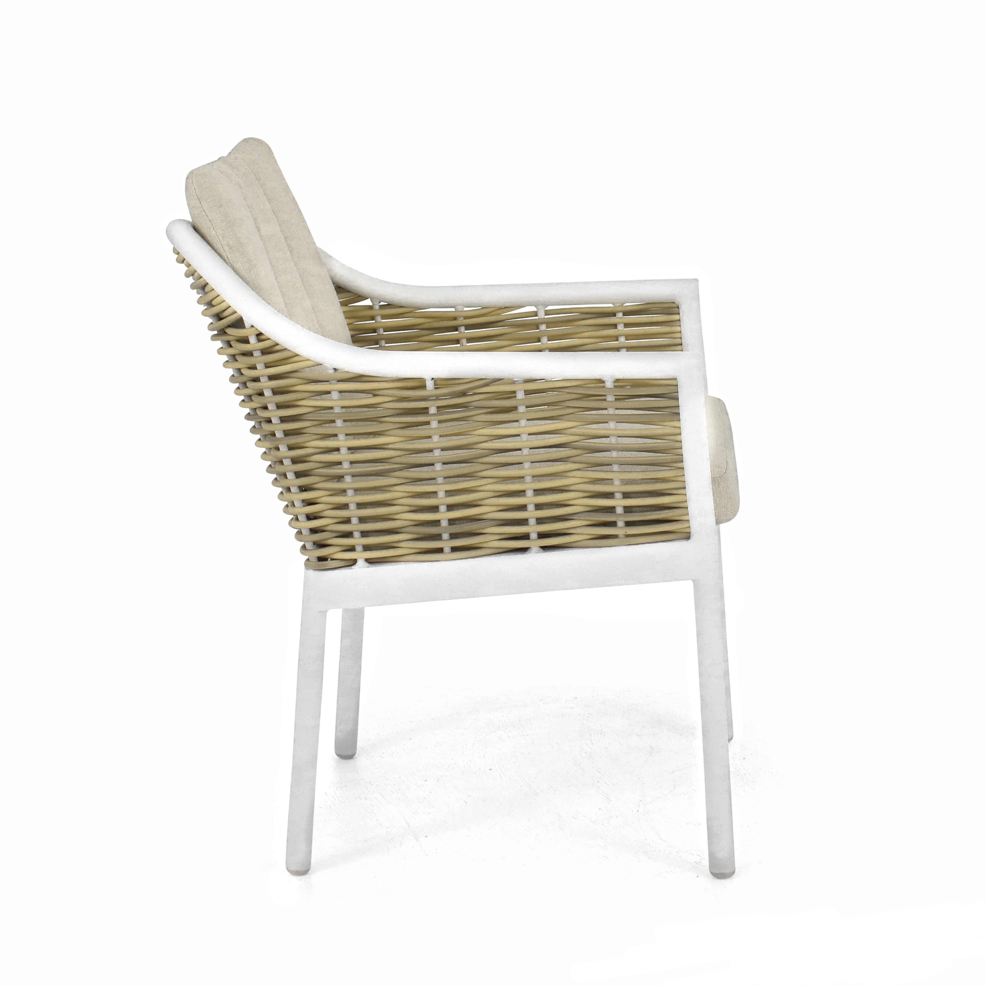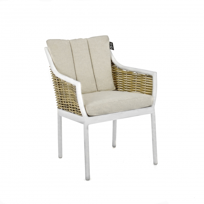 • Χαρακτηριστικά: Πολυθρόνα Κήπου με σκελετό αλουμινίου και πλέξη wicker. Συμπεριλαμβάνονται τα μαξιλάρια κατασκευασμένα με την τεχνολόγια Bee Wett.