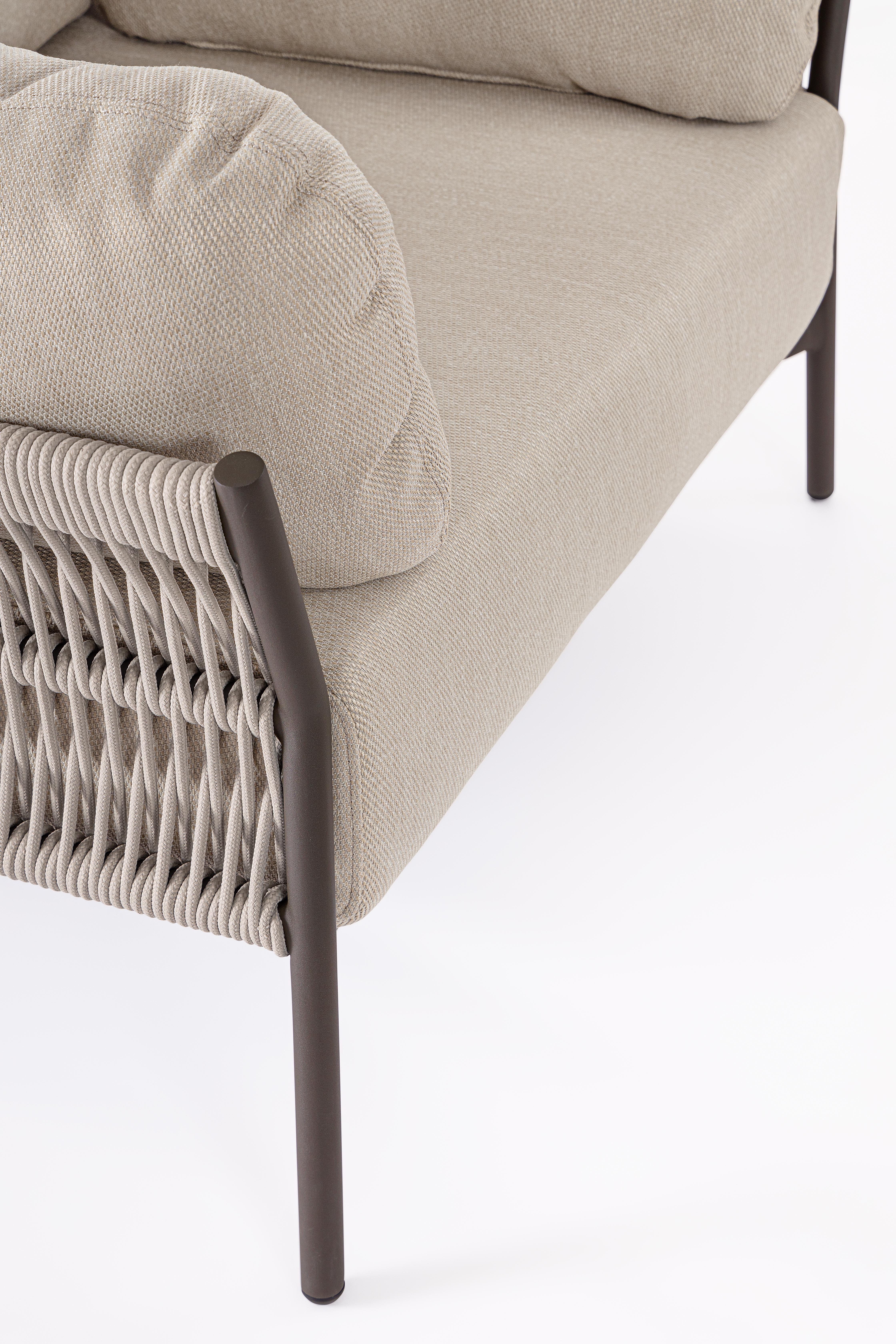 Σκελετός αλουμινίου, με επίστρωση πούδρας (πολυεστέρας).Πλέξη από σχοινί tetoron (100% πολυεστέρας). Περιλαμβάνει μαξιλάρι πλάτης και καθίσματος με αφαιρούμενο κάλυμμα από Ακρυλικό ύφασμα. Διαθέσιμο κατόπιν παραγγελίας εντός 20 εργάσιμων ημερών
