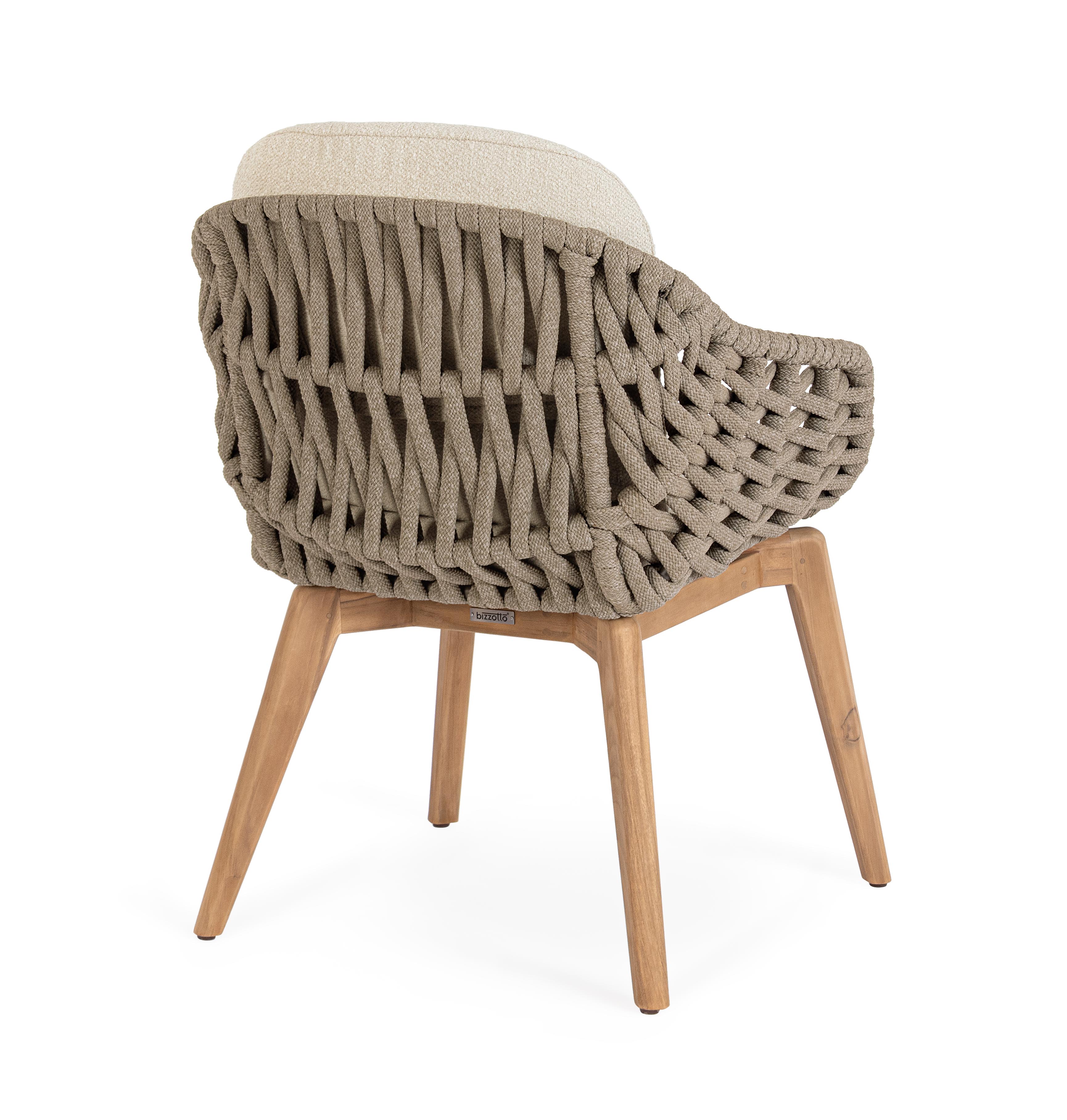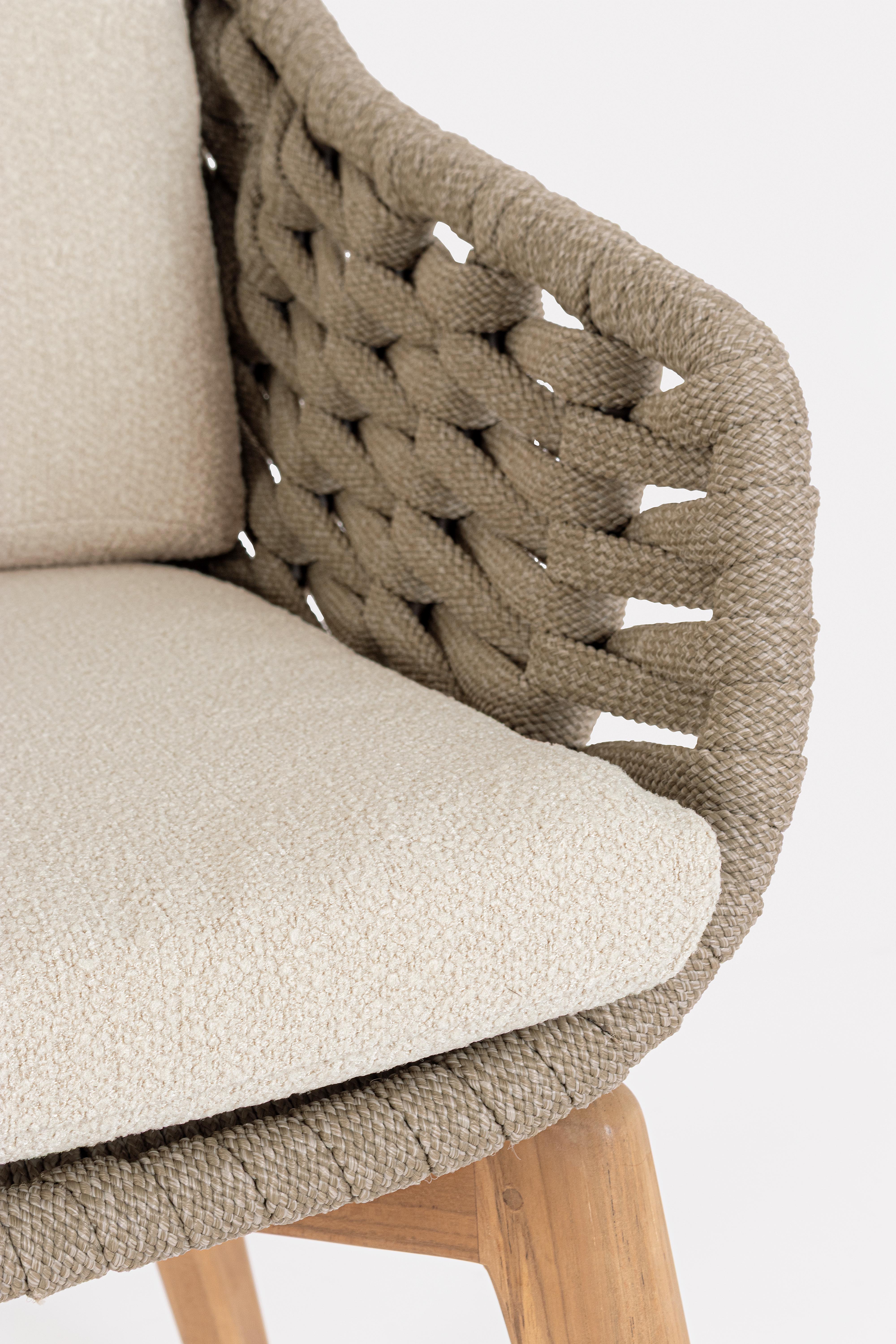 Σκελετός Αλουμινίου με επίστρωση πούδρας (πολυεστέρα), Πόδια με Ξύλο teak - svlk με φυσικό φινίρισμα, πλέξη από Σχοινί Πολυπροπυλενίου και βίδες από ανοξείδωτο ατσάλι. Περιλαμβάνει Μαξιλάρι με αφαιρούμενο κάλυμμα με αντηλιακή προστασία olefin (100% polypropylene).