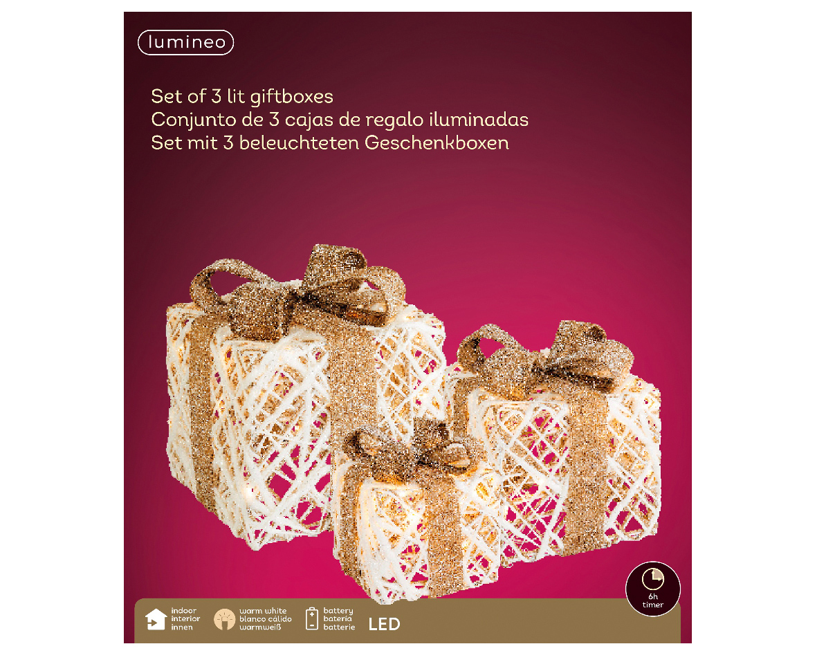 Χριστουγεννιάτικα Φωτιζόμενα Δωράκια Σετ 3 Τεμαχίων**