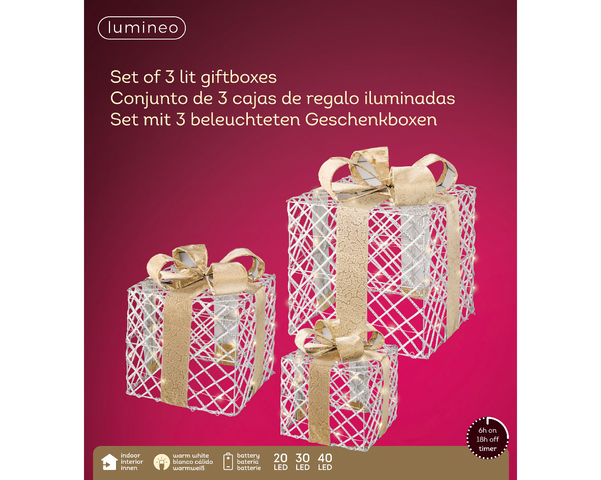 Χριστουγεννιάτικα Φωτιζόμενα Δωράκια Σετ 3 Τεμαχίων**