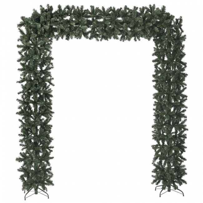 Χριστουγεννιάτικη καμάρα εισόδου απο πράσινη γιρλάντα. Οι διαστάσεις της είναι 210Χ240εκ. και το εσωτερικό της είναι 1.45Χ2.10εκ. Μία εντυπωσιακή αψίδα για να διακοσμήσετε την είσοδο της επιχείρησής σας προσφέροντας ένα θερμό καλωσόρισμα στους επισκέπτες σας.