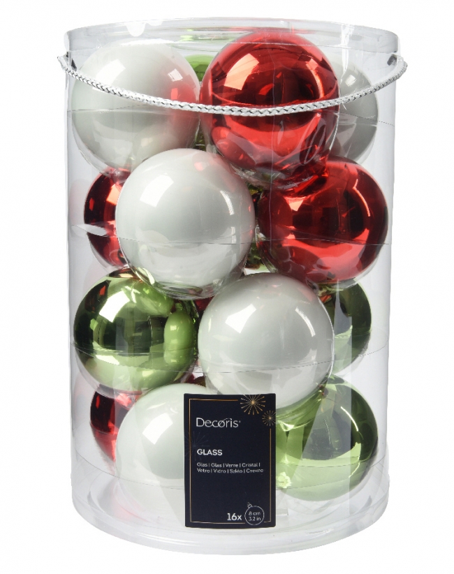 Χριστουγεννιάτικη Γυάλινη Μπάλα 8 εκ Σετ 16 Τεμαχίων**