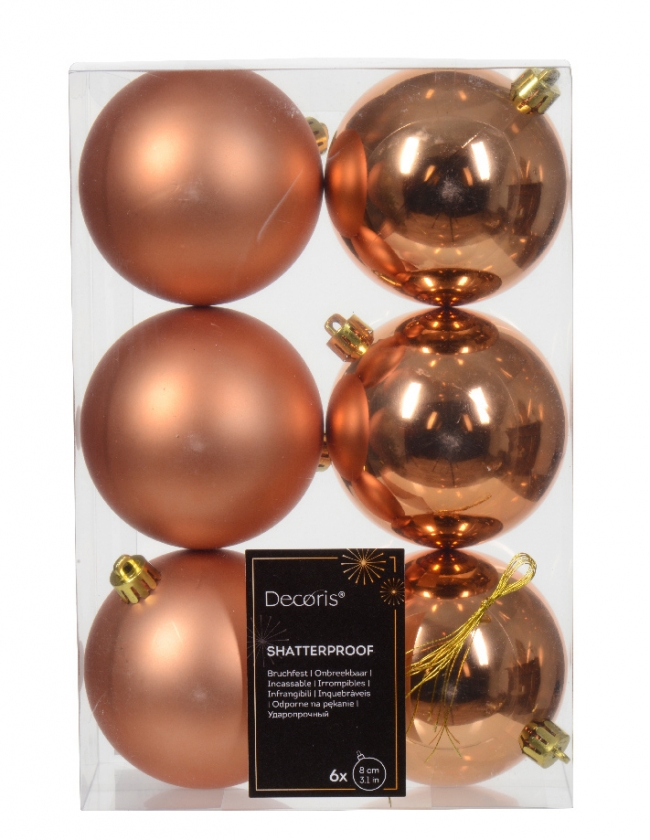 Χριστουγεννιάτικη Πλαστική Μπάλα 8 εκ Σετ 6 τεμαχιών