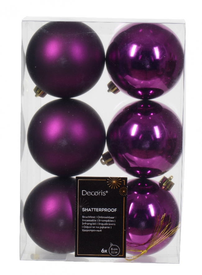 Χριστουγεννιάτικη Πλαστική Μπάλα 8 εκ Σετ 6 τεμαχιών**