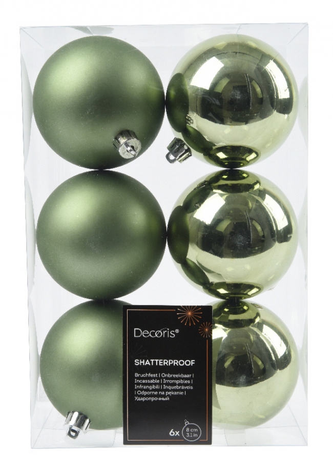 Χριστουγεννιάτικη Πλαστική Μπάλα 8 εκ Σετ 6 Tεμαχιών