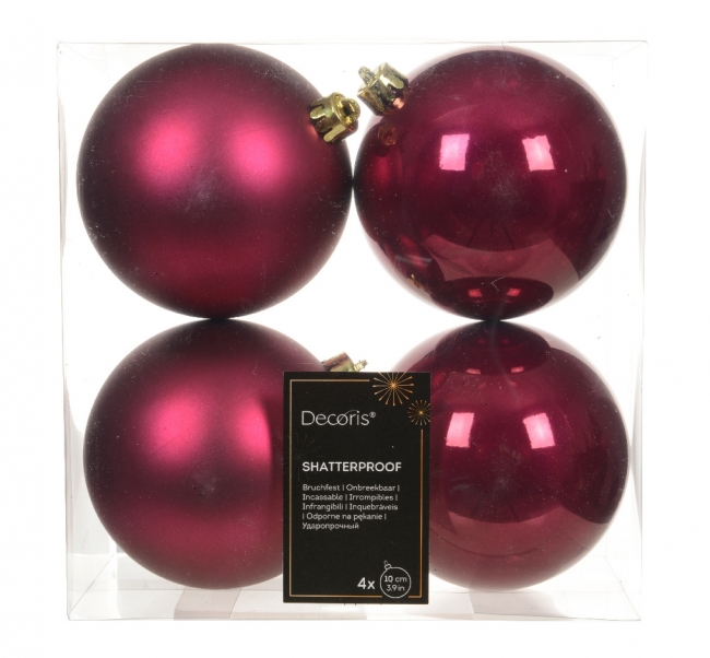 Χριστουγεννιάτικη Πλαστική Μπάλα Φ10 εκ. Σετ 4 Τεμαχιών