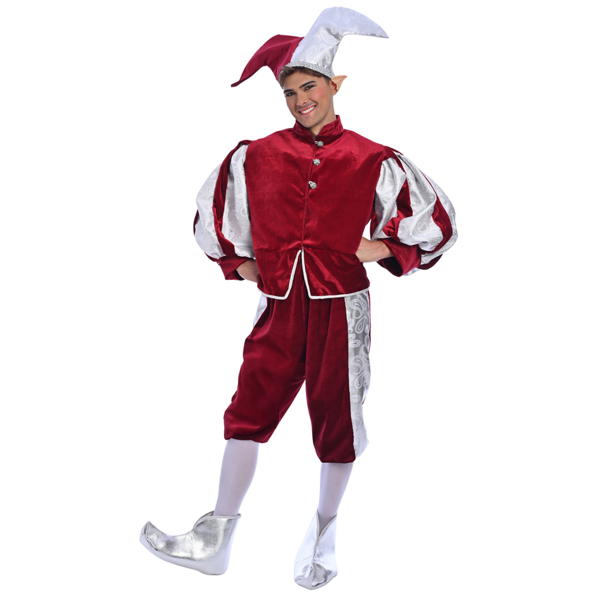 Φτιαγμένη από Μπορντό Βελούδο σε συνδυασμό με Ασημί-Λευκό Μπροκάρ, αυτή η Στολή Ξωτικού ξεχωρίζει για τα φαρδιά φουσκωτά Μανίκια και το δίχρωμο μυτερό Καπέλο. Προσφέρει άνετη και ευχάριστη εφαρμογή, ιδανική για Χριστουγεννιάτικες εκδηλώσεις ή παραστάσεις. Το σχέδιο είναι Unisex, κατάλληλο τόσο για άνδρες όσο και για γυναίκες