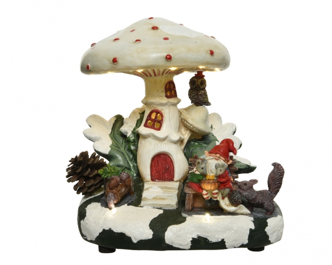 Χριστουγεννιάτικο Διακοσμητικό Φωτιζόμενο Μανιτάρι με Ξωτικό 22 εκ
