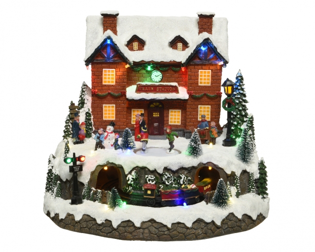 Χριστουγεννιάτικο Διακοσμητικό Φωτιζόμενο Σταθμός Τρένο 28.5εκ