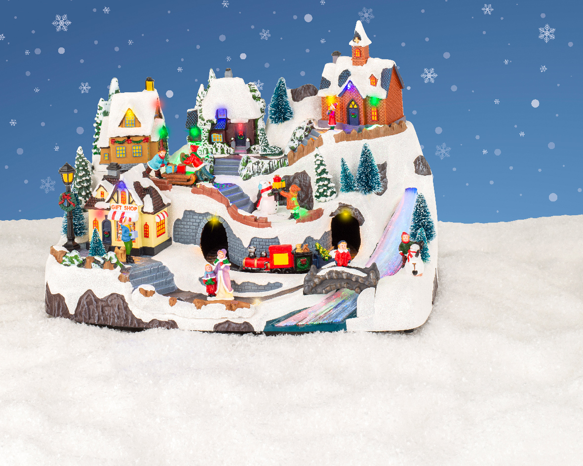 Χιονισμένα τοπία, κάλαντα, παιδιά που παίζουν, μισάνοιχτα παράθυρα που βλέπουν στο όνειρο. Ο μαγικός Χριστουγεννιάτικος προορισμός που όλοι ονειρευόμαστε παίρνει ζωή πατώντας ένα κουμπί. Φανταστικά Χριστουγεννιάτικα διακοσμητικά με φως, κίνηση και μουσική