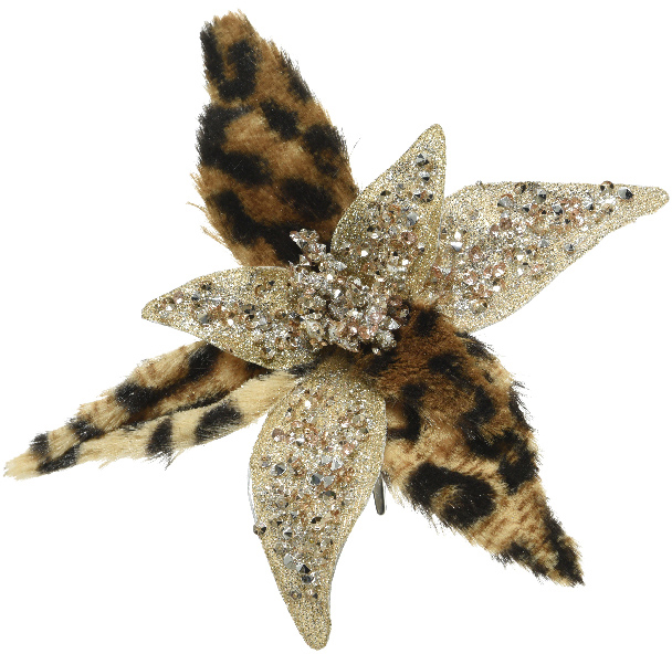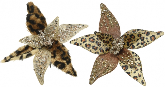 Όταν το animal print συναντά το βελούδο, το γκλίτερ και τα στρας τότε ο συνδυασμός είναι εκρηκτικός! Εντυπωσιακά Χριστουγεννιάτικα λουλούδια με κλιπ που θα κάνουν το δεντρο σας ακόμα πιο in! Τολμήστε τα και εντυπωσιάστε με την επιλογή σας.