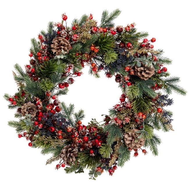 Χριστουγεννιάτικο Διακοσμητικό Στεφάνι με Berries Φ50εκ