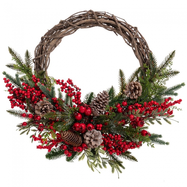 Χριστουγεννιάτικο Στεφάνι με Berries και Κουκουνάρια 50εκ